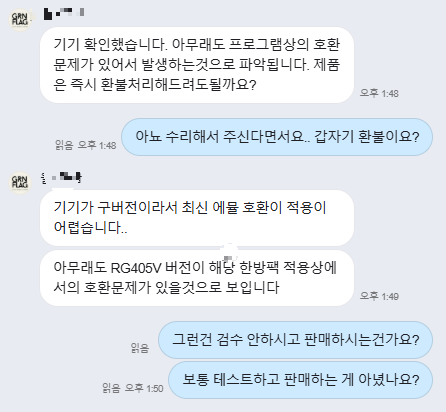 그러더니 업체쪽에서 기기 점검 확인 후 불량 확인인 지 확인 후 조치보겠다고 하더군요.