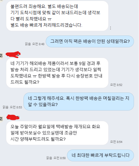 그래서 저는 또 문의를 넣었습니다.