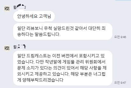 게임 관련해서 문의를 드려보니 죄송하다는 말만 합니다..