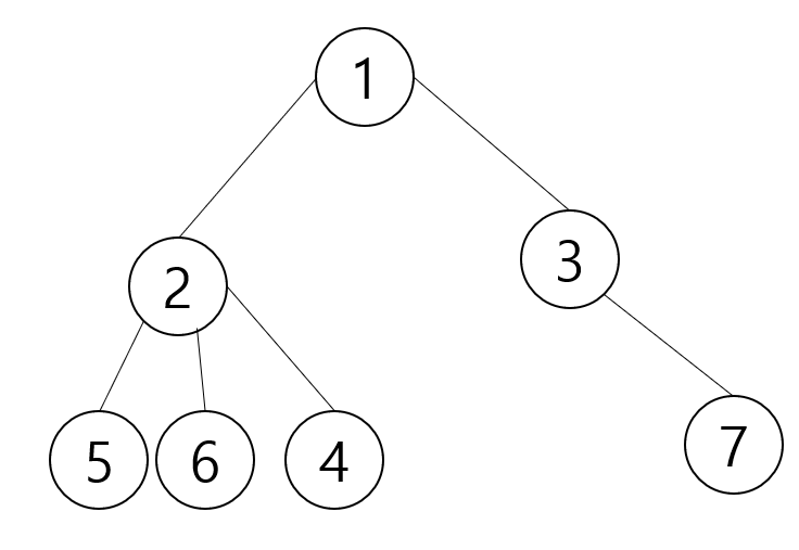 1. 우선 Root인 1번부터 탐색하고, 2번으로 가서 너비로 가기 때문에 3번을 탐색합니다.