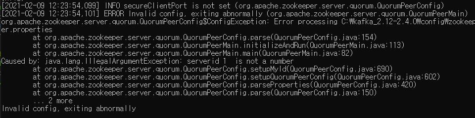 org.apache.zookeeper.server.quorum.QuorumPeerConfig$ConfigException: Error processing C:\kafka_2.12-2.4.0\config\zookeeper.properties