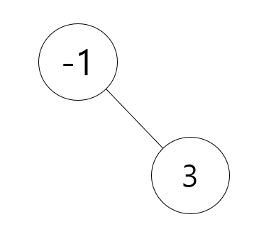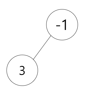 그리고 3이 들어올 때 3이 더 작기 때문에 -1 Node의 자식 Node로 들어가게 됩니다.