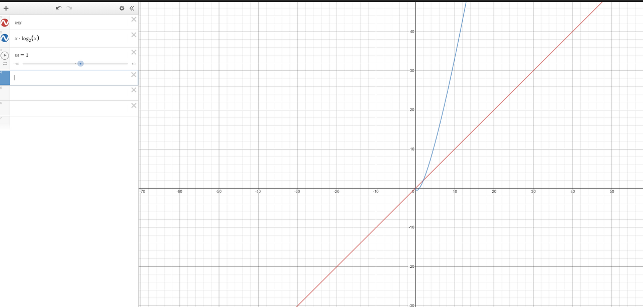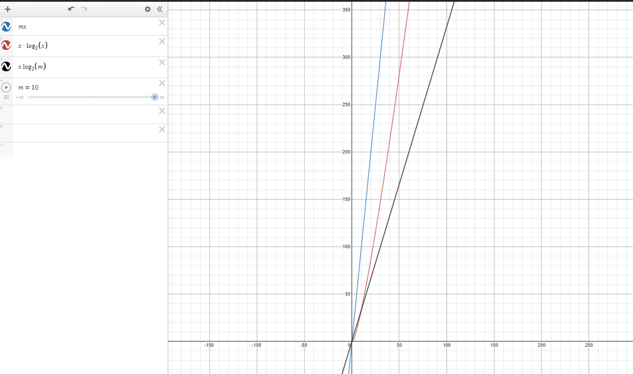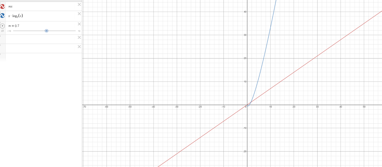 그러므로 일반적인 경우에 x * log2(x)이 더 느리지만 m이 커질 경우엔 x * log2(x)이 더 빨리 끝난다는 것을 알 수 있습니다.