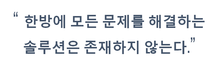 그래서 어떤 기술을 가져오더라도 그것이 한방에 해결되는 솔루션이 아니며 무조건 다 좋거나 장점만 가지고 있는 것은 없다는 의미입니다.