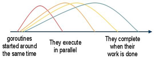 그림을 보면 4가지의 Go루틴이 시작을 하는데 선들 하나하나가 하나의 쓰레드라고 생각하시면 됩니다.