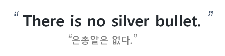 거기에 위와 같은 문구가 있습니다. 이 말을 해석하면 ‘은총알’은 없다는 의미인데