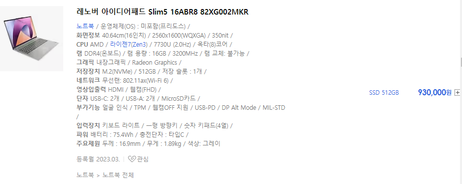아이디어패드가 새롭게 Zen4 아키텍쳐 CPU로 돌아왔네요!