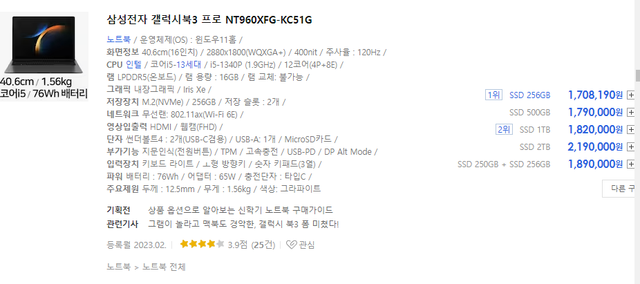 지금까지 2023년도 버전 개발자용 노트북 추천 글이였습니다.