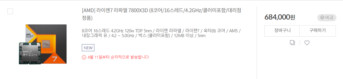 [바미] AMD Ryzen 7 7800X3D 출시 및 국내 가격