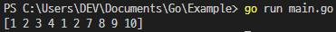 a := []int{1, 2, 3, 4, 5, 6, 7, 8, 9, 10}