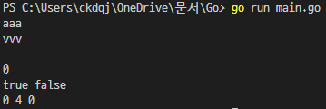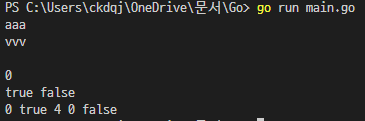 한 가지 재밌는 것은 Golang에서는 값을 대입하지 않는 값을 출력하고자 할 경우 기본 값이 출력이 됩니다.